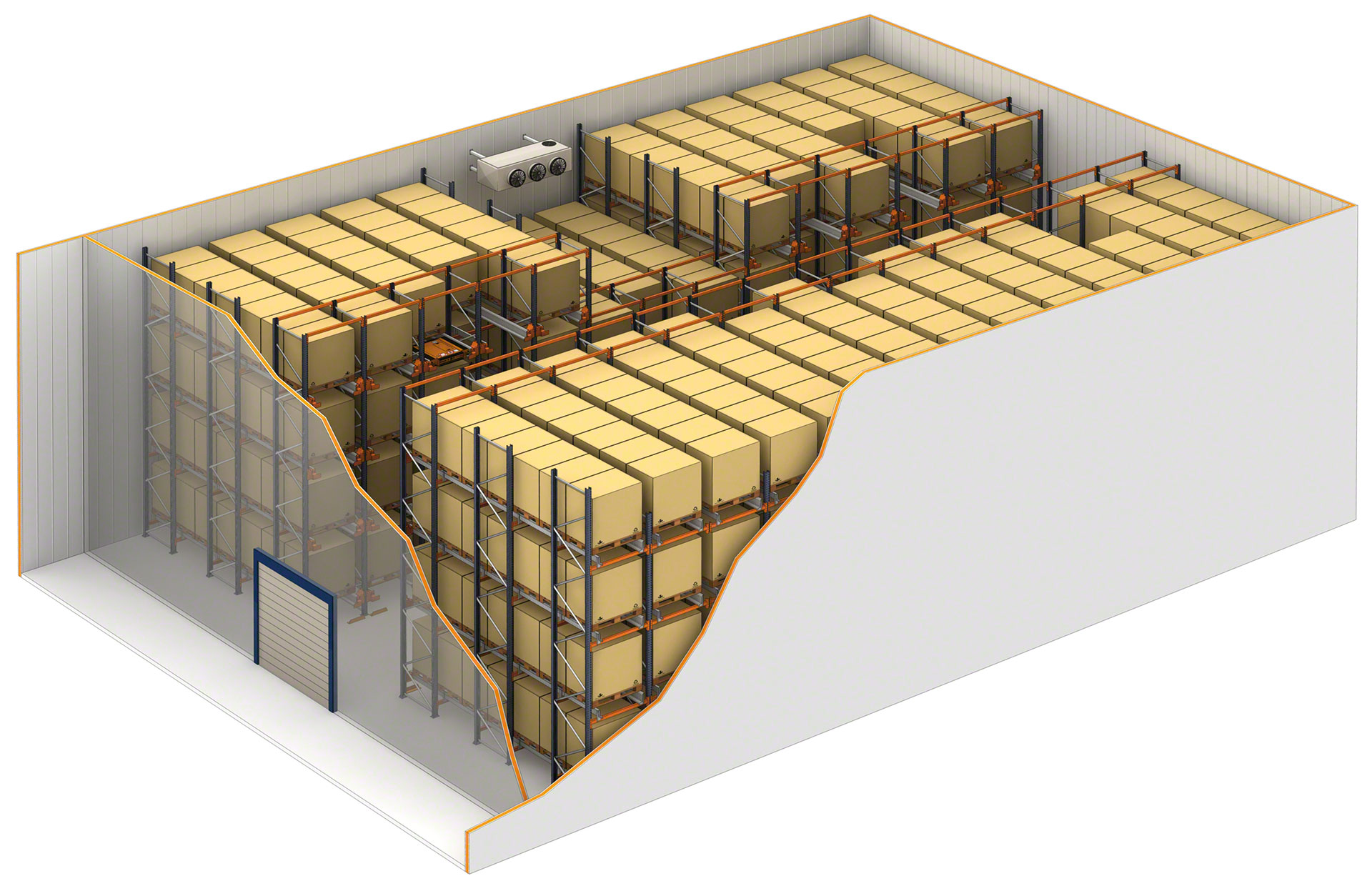 - Úspora nákladů: optimální využití prostoru snižuje rozlohu, kterou systém zabírá, a tím snižuje náklady na skladovací plochu. A ve skladech chladíren to znamená menší plochu k vychlazení s výsledkem snížení spotřeby energie.